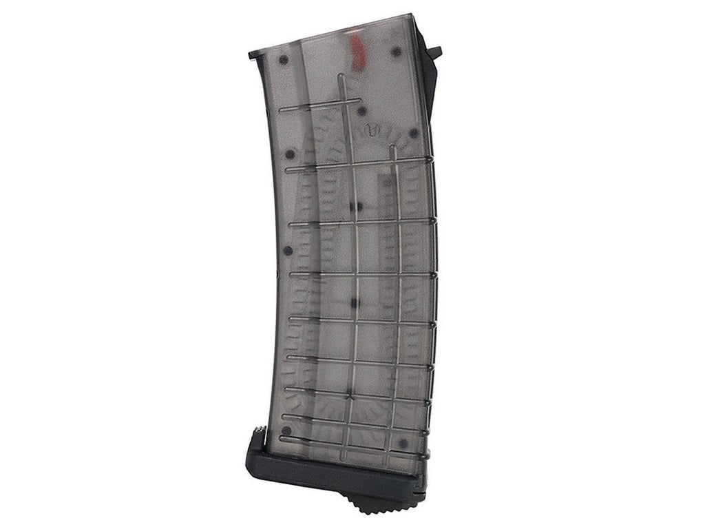 The PTS TPM-AK Magazine (AEG) is a mid-cap magazines for airsoft AK type electric guns. The magazine features 155 bb capacity, a translucent reinforced polymer body that can withstand rough field conditions and allow for easy visual identification of remaining rounds inside the magazine. It also includes the PTS EPM baseplate for bump or drop protection. The magazine is compatible with Tokyo Marui, CYMA, Arcturus AK Series, and most other AK AEG's.