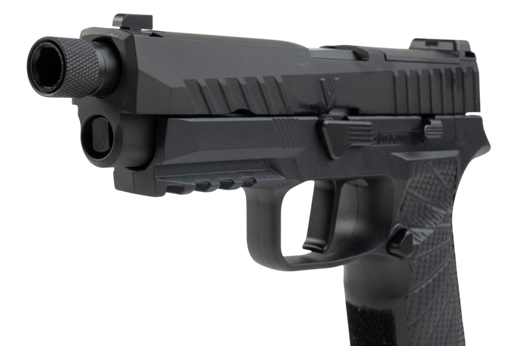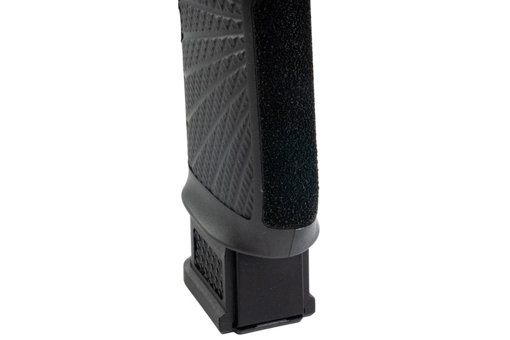 What sets apart the SA320 is the unique guide-hop hop-up adjustment system (similarly found on VFC's P320 GBBP series) and fixed non-tilting outer barrel assembly. This design significantly enhances accuracy and stability as the hop-up is adjustable without tools and without needing to take off the slide. Perfect for even the most demanding tactical environments. The pistol also has a built-in mounting plate with 3 adapter plates that are designed to fit RMR, Romeo, and ACRO red dot footprints, making it convenient for end-users to mount their preferred red dot system with ease. Crafted from high-strength polymer with precision angle cuts and pronounced texturing, this grip significantly enhances shooter comfort and control when handling the SA320. It also features a 1913-standard tactical rail, enabling effortless integration of tactical light or laser modules.