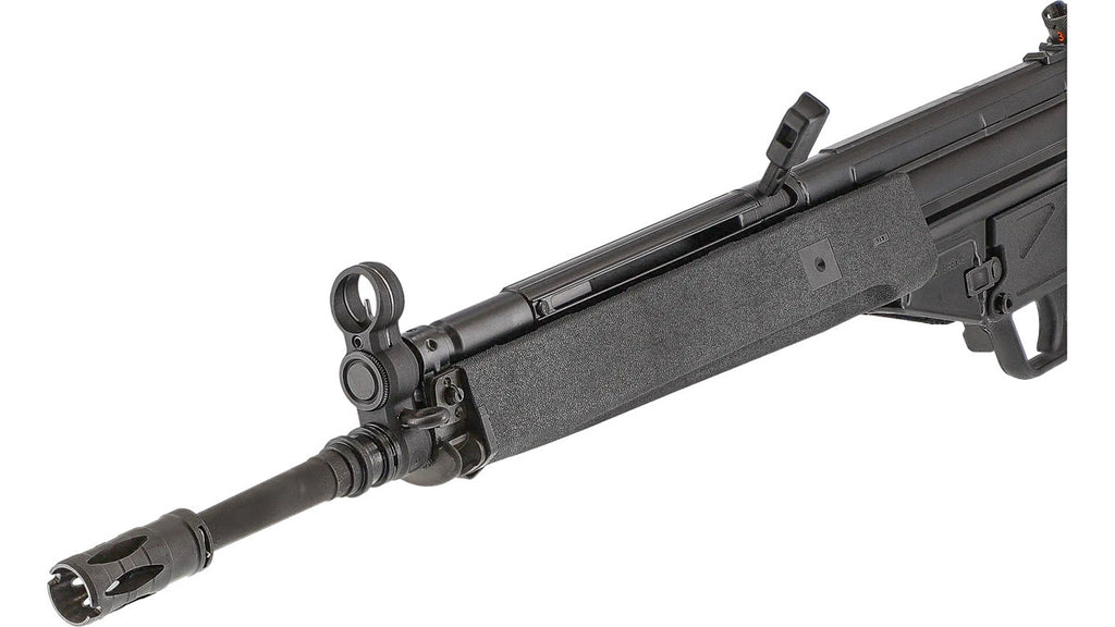 Internally, VFC has beefed up the HK33 by equipping it with a big bore cylinder assembly, and a heavy recoil buffer with complementary recoil springs to give the HK33 GBB Airsoft rifle a more stout and defined felt recoil, yet still keeping a realistic cyclic rate of fire. The HK33 gas Airsoft rifle features VFC's new Hop-Up adjustment system, meaning you can adjust the hop-up by simply removing the handguard and rotating the dial, allowing you to adjust the hop without needing to remove the magazine.