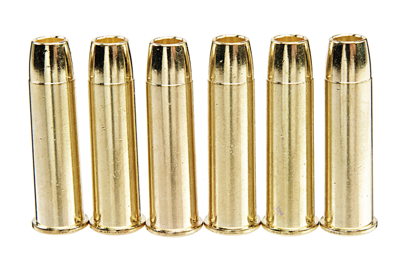Reloads are realistic too, with the opening of a side latch, and half cocking the hammer, you can effectively "punch" out the cartridges with the fully functioning extractor rod, or alternatively, tilt the .45 backwards and just let the cartridges slide out!