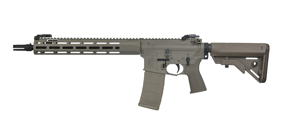 The L403A1 is the centerpiece of the UK Ministry of Defence’s Project Hunter, selected as the next-generation standard rifle for the British Army, Army Special Operations Brigade (ASOB), and Royal Marines Commandos. Based on Knight’s Armament’s KS-1 (an advanced iteration of the SR-16), the rifle features a 13.7-inch dimpled heavy barrel, URX-6 free-float handguard, and the proven Stoner internal piston gas system paired with the enhanced E3 bolt—offering improved reliability, modularity, and control under demanding field conditions.